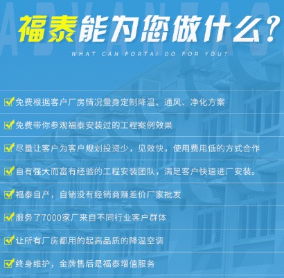 今天站在客戶的立場來說說客戶需要環(huán)?照{(diào)工廠怎么做才是他們喜歡的合作方式,客戶們都希望能夠用比較少的投入費(fèi)用來改善環(huán)境但是這個問題又是很多工廠不愿意讓利的,那么福泰環(huán)保空調(diào)工廠就能在這方面做到比較親民的價(jià)格而且保證質(zhì)量和優(yōu)質(zhì)的服務(wù)前提下滿足客戶們。因?yàn)楣S直接對接客戶的話價(jià)格當(dāng)然有優(yōu)惠,當(dāng)然這其中一定是要策劃的有效果才行。畢竟客戶終極要求就是能改善車間高溫悶熱和異味粉塵問題嘛。