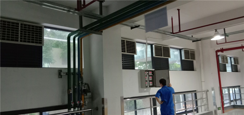 經(jīng)過福泰的降溫策劃總監(jiān)現(xiàn)場勘察后給出了省錢的環(huán)?照{(diào)直吹方案給此車間做通風(fēng)降溫環(huán)境善,為出風(fēng)口的風(fēng)速設(shè)置為7.3米/S,通過環(huán)?照{(diào)源源不斷的新鮮潔凈冷空氣快速降低工人工作崗位處的環(huán)境溫度,加快室內(nèi)悶熱有異味空氣的排放效率,提升車間的空氣品質(zhì)讓工人有一個非常舒適的工作環(huán)境。