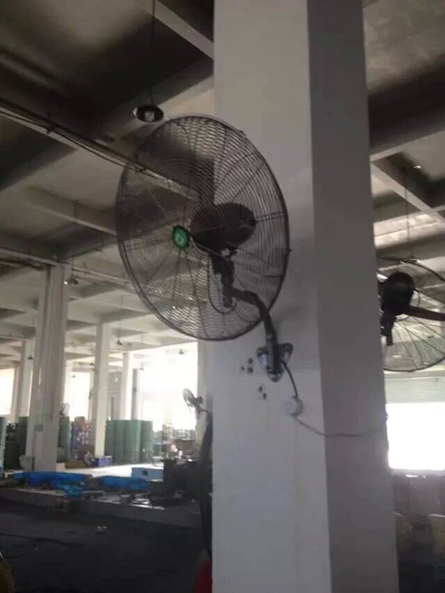 噴霧降溫展示 5.電風(fēng)扇:常見的有吊扇、牛角扇、壁扇、臺(tái)扇、落地扇等,這一類設(shè)備優(yōu)點(diǎn)是單臺(tái)購買投資比較小,用電較省,維修保養(yǎng)費(fèi)用低,缺點(diǎn)是效果差,安全性差。主要是利用風(fēng)扇扇葉轉(zhuǎn)動(dòng)的動(dòng)能攪動(dòng)熱空氣,引起氣流,不能實(shí)現(xiàn)通風(fēng)換氣,對(duì)排出有害氣體不良,造成車間通風(fēng)降溫工程效果差。