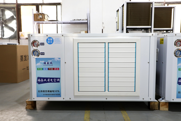 3、如果你的車間是封閉式的車間想降溫通風(fēng),環(huán)境比較好要求比較高的車間想省錢降溫,用傳統(tǒng)空調(diào)太貴而且電費(fèi)也是很肉疼的,可以采用福泰蒸發(fā)冷省電空調(diào),蒸發(fā)冷空調(diào)有三款,側(cè)出風(fēng),頂出風(fēng)和立式款式,它和傳統(tǒng)空調(diào)降溫原理差不多,它是通過(guò)水冷降溫也就是外機(jī)采用水簾風(fēng)機(jī)形式減低內(nèi)機(jī)的能耗,提高壓縮降溫制冷的能效