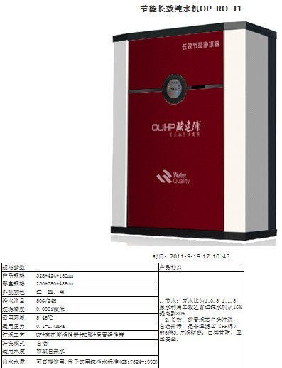 http://www.gdfutai.com 環(huán)?照{(diào),東莞環(huán)?照{(diào),深圳環(huán)保空調(diào),惠州環(huán)?照{(diào),節(jié)能環(huán)?照{(diào)http://siamiyara.com飲用水凈水器 直飲機(jī)、廚房廚房超濾凈水器 下決心買(mǎi)個(gè)祛除水堿的水處理器,可從網(wǎng)上一搜,又是純水機(jī),又是軟水機(jī),又是凈水機(jī),而且每種機(jī)都有好多種品牌,國(guó)內(nèi)的國(guó)外的,2000多元的,1萬(wàn)多元的,更糾結(jié)了。 終于,有緣認(rèn)識(shí)了個(gè)“圈里”的朋友,在他的耐心講解下,終于選到了適合我的水處理機(jī)器。在這里也向同是飽受水堿之苦的北京人說(shuō)說(shuō)這里的玄妙,不用花多少錢(qián)就能潔凈自家的水。這里,我們主要介紹的是純水機(jī),因?yàn)樗庆畛傅淖罴堰x擇。 ●純水機(jī)的構(gòu)造——五級(jí)過(guò)濾 首先,純水機(jī)是利用ro膜過(guò)濾技術(shù)來(lái)制造純凈水的機(jī)器。ro膜通俗來(lái)講,就是一張過(guò)濾網(wǎng),其網(wǎng)眼極其微小,小到只能讓水分子和比水分子小的物質(zhì)通過(guò),而其他大分子物質(zhì)則被隔離開(kāi)來(lái)。 純水機(jī)的主要部件包括:pp棉濾芯、顆;钚蕴繛V芯、燒結(jié)活性炭濾芯、ro膜濾芯、后置活性炭濾芯及這些濾芯的外殼、變壓器、增壓泵、高壓電磁閥、低壓電磁閥、廢水比例器、水龍頭及管線部件等。 ●純水機(jī)的工作原理:生產(chǎn)純水才有廢水 完整的純水機(jī)是由各部電磁閥門(mén)來(lái)控制水的進(jìn)出,實(shí)現(xiàn)自動(dòng)化的。當(dāng)壓力桶缺水或打開(kāi)水龍頭,低壓電磁閥感應(yīng)水壓不足開(kāi)啟水泵,開(kāi)始制造純凈水;當(dāng)壓力罐灌滿或關(guān)閉水龍頭,低壓電磁閥感應(yīng)水壓增大而關(guān)閉水泵,停止制造純凈水。 當(dāng)遇到停水或者關(guān)閉自來(lái)水進(jìn)水閥門(mén)時(shí),高壓電磁閥會(huì)感應(yīng)水壓不足,在制水過(guò)程中會(huì)停止水泵,防止水泵空轉(zhuǎn),以免燒毀。 一般廚房的水槽邊上除了水龍頭之外都會(huì)預(yù)留一個(gè)孔,一般用來(lái)裝噴槍或者洗滌靈的液壓器。這個(gè)孔就可以用來(lái)裝純水機(jī)的水龍頭。當(dāng)你不需要用純水的時(shí)候,打開(kāi)普通的水龍頭,出來(lái)的是沒(méi)有經(jīng)過(guò)處理的自來(lái)水,打開(kāi)純水機(jī)的水龍頭,出來(lái)的就是可以直接飲用的純凈水。而且,只有在制造純凈水的時(shí)候才會(huì)產(chǎn)生廢水,用普通自來(lái)水是不會(huì)產(chǎn)生廢水的。 ●純水機(jī)制造的純水對(duì)人身體好嗎 直接從ro膜出來(lái)的水是純凈水,長(zhǎng)期飲用對(duì)身體會(huì)不好。人體所能有效吸收的水呈弱堿性,因此,大多數(shù)后置過(guò)濾都會(huì)放置礦石顆粒,使水龍頭出水呈弱堿性并增加水中礦物質(zhì),飲用后對(duì)身體很好。這種弱堿性水也可以直接用來(lái)養(yǎng)魚(yú)和水草。 純水機(jī)的維護(hù)——半年換三芯120元,2年換大芯280元。 純水機(jī)的濾芯使用壽命和當(dāng)?shù)刈詠?lái)水的水質(zhì)、水壓以及使用者的用水量有關(guān)系。正常的,如果每天使用50升水的情況下,pp棉濾芯(現(xiàn)在節(jié)能型純水機(jī)已經(jīng)棄用PP棉,改用更換周期更長(zhǎng)的超濾膜)、顆粒活性炭濾芯、燒結(jié)活性炭濾芯可使用4-6個(gè)月,換三芯需要120元,其中,pp棉濾芯可適當(dāng)勤換;ro膜濾芯可正常使用18個(gè)月左右,更換ro膜濾芯需要280元。后置活性炭濾芯6個(gè)月左右。 純水機(jī)的壽命理論來(lái)講約為10年,實(shí)際上,使用3-4年后水泵壓力就明顯的不足,如果繼續(xù)使用機(jī)器,會(huì)造成廢水過(guò)多等情況。而其他部件也會(huì)出現(xiàn)不同程度老化,因此,建議直接更換機(jī)器維護(hù)成本會(huì)更小一些。 如果長(zhǎng)期不更換濾芯,也可正常使用,但是廢水比例會(huì)增加,ro膜和水泵負(fù)擔(dān)會(huì)加重,嚴(yán)重時(shí),會(huì)損壞水泵,因此,不管出水是否正常,都要定期更換濾芯,以保證純水機(jī)的正常工作。如果從網(wǎng)上購(gòu)買(mǎi)了純水機(jī),一般的大型超市、電器城都有銷售濾芯。也可以在網(wǎng)上直接郵購(gòu)。 ●純水機(jī)買(mǎi)什么價(jià)位的最合適 網(wǎng)上有很多純水機(jī)的銷售信息,價(jià)格差別也很大,600元、2000元到4000元不等。其實(shí),純水機(jī)的結(jié)構(gòu)和配件基本上都差不多,配件規(guī)格幾乎一樣,效果也沒(méi)有太大差別,價(jià)位上的差別只來(lái)自品牌因素。一般來(lái)說(shuō),挑價(jià)格中等的購(gòu)買(mǎi)一般沒(méi)問(wèn)題,但是這里建議購(gòu)買(mǎi)時(shí)不要選擇600元左右的純水機(jī),因?yàn)檫@個(gè)價(jià)位的產(chǎn)品的電機(jī)和濾芯質(zhì)量還是不夠過(guò)關(guān)的。 純水機(jī)分為很多型號(hào),我們常用的是50加侖型號(hào),除此之外,還有100加侖,200加侖,400加侖等不同型號(hào),可根據(jù)用水量來(lái)決定用什么型號(hào)的機(jī)型。一般來(lái)講,50加侖已經(jīng)可以滿足我們的需求了。 ●純水機(jī)產(chǎn)生的廢水怎么辦 一般來(lái)講,純水和廢水的比例一般在1:3左右,污染嚴(yán)重的地區(qū)廢水量比例會(huì)增大。產(chǎn)生的廢水可以直接排入下水道。但是,很多人都覺(jué)得這么多廢水浪費(fèi)了太可惜,會(huì)用盆接來
