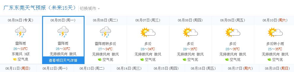 根據(jù)市氣象臺(tái)預(yù)報(bào):預(yù)計(jì)我市6月4日到5日受副高邊緣不穩(wěn)定氣流影響,高溫多云,有陣雨或雷陣雨,局部地區(qū)最高溫度將達(dá)35.8°C;6日多云,最高溫超35°C以上,局部有陣雨或雷陣雨;展望7日起受副熱帶高壓控制,天氣將變得悶熱,以多云天氣為主,偶有短時(shí)陣雨。