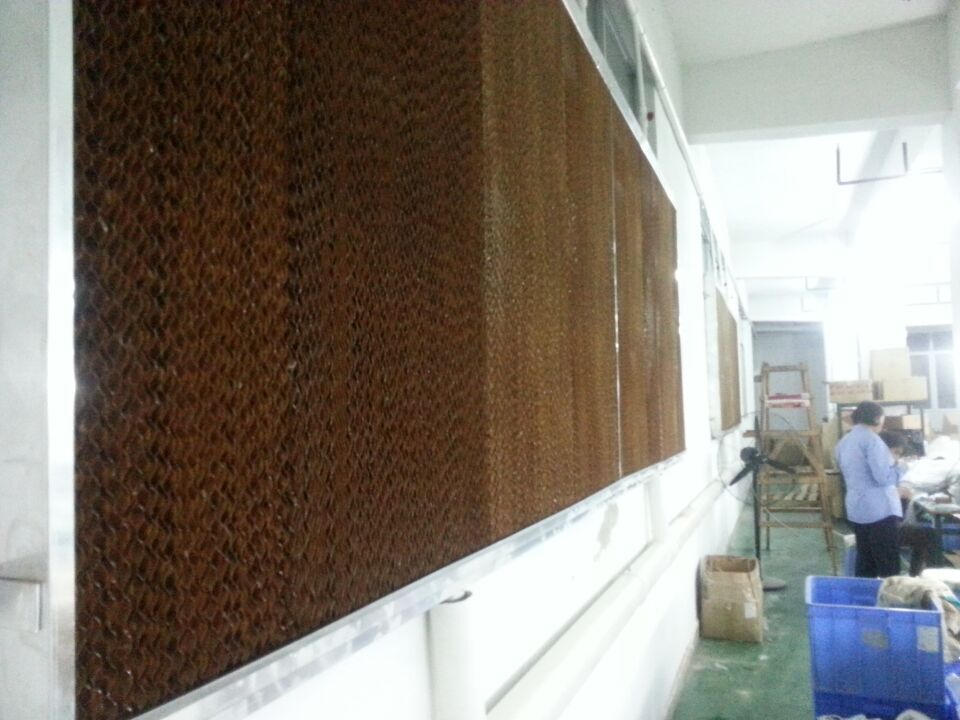 此方案的降溫原理是通過(guò)抽風(fēng)機(jī)將室內(nèi)的高溫悶熱空氣抽出,另一邊室外的熱空氣通過(guò)水簾降溫后補(bǔ)充到車間內(nèi),但由于他的濕度太大,而且易臟易壞又不方便維護(hù)保養(yǎng),所以并不建議客戶安裝使用,當(dāng)然了如果車間內(nèi)不怕濕度同時(shí)又想節(jié)省成本的話,這種降溫方案還是非常適用的,但要注意的是由于水簾是由多層波紋纖維疊合物(水簾紙)易損壞,所以在設(shè)計(jì)安裝的時(shí)候最好加上一層保護(hù)隔離網(wǎng)在外面,這樣就能保證它的使用壽命更長(zhǎng)。